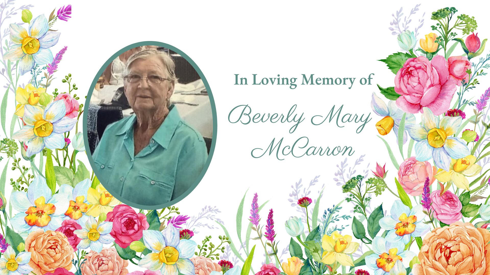 In Loving Memory of Beverly Mary McCarron.Bev passed away peacefully on 17th October 2025 aged